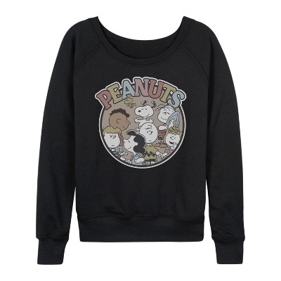 Women's - Peanuts - Boo Crew Lightweight French Terry Wide Neck Long Sleeve Graphic Shirt