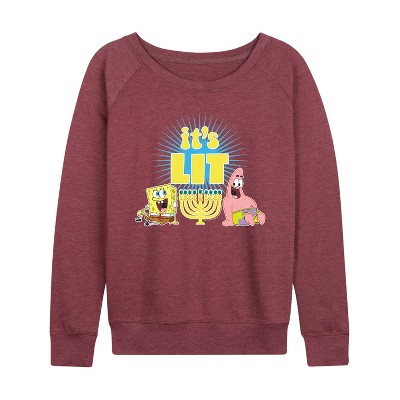 Women's - SpongeBob SquarePants - Dear Santa Lightweight French Terry Wide Neck Long Sleeve Graphic Shirt