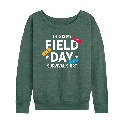 Women's - Instant Message - Field Day Survival Shirt Lightweight French Terry Wide Neck Long Sleeve Graphic Shirt