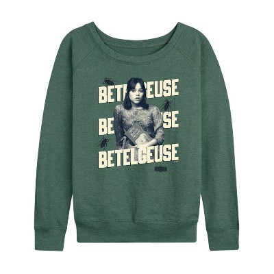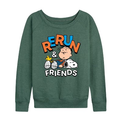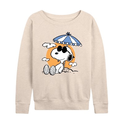 Women's - Peanuts - Snoopy Woodstock Vampire Lightweight French Terry Wide Neck Long Sleeve Graphic Shirt