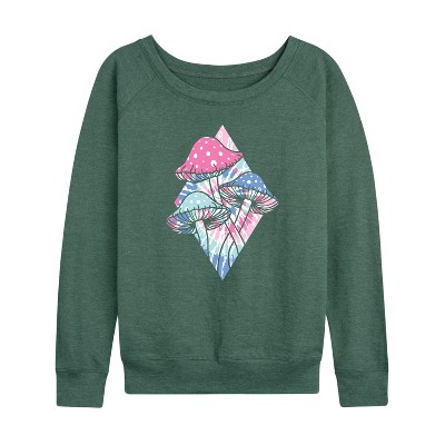 Women's - Instant Message - Tie Dye Mushroom Diamond Lightweight French Terry Wide Neck Long Sleeve Graphic Shirt