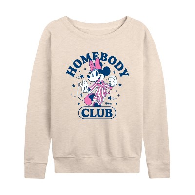 Women's - Disney - Minnie Homebody Club Lightweight French Terry Wide Neck Long Sleeve Graphic Shirt