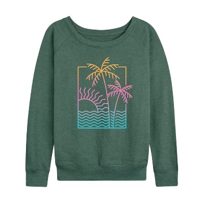 Women's - Instant Message - Line Drawing Sunset Lightweight French Terry Wide Neck Long Sleeve Graphic Shirt