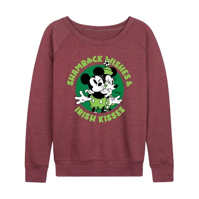 Women's - Disney - Shamrock Wishes Irish Kisses Lightweight French Terry Wide Neck Long Sleeve Graphic Shirt