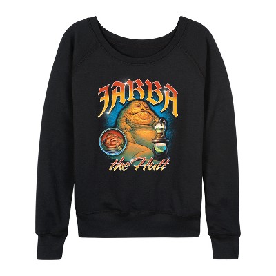 Women's - Star Wars - Jabba The Hut Lightweight French Terry Wide Neck Long Sleeve Graphic Shirt