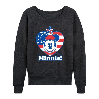 Women's - Disney - Mickey Mouse Grid Lightweight French Terry Wide Neck Long Sleeve Graphic Shirt