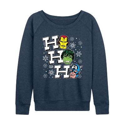 Women's - Marvel - Ho Ho Ho Avengers Lightweight French Terry Wide Neck Long Sleeve Graphic Shirt