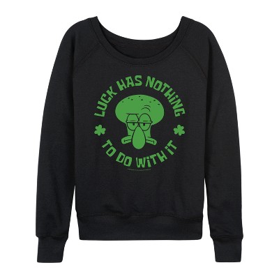 Women's - SpongeBob Squarepants - Squidward Luck Lightweight French Terry Wide Neck Long Sleeve Graphic Shirt