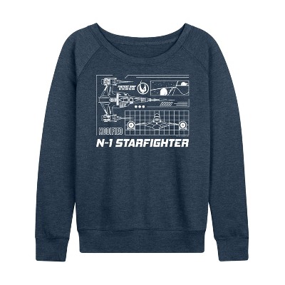 Women's - Star Wars - The Mandalorian N1 Starfighter Lightweight French Terry Wide Neck Long Sleeve Graphic Shirt