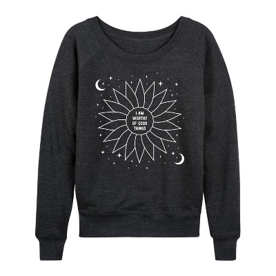 Women's - Instant Message - Celestial Flower Affirmation Lightweight French Terry Wide Neck Long Sleeve Graphic Shirt