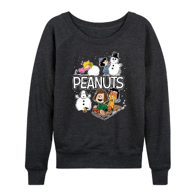 Women's - Peanuts - Love Is Kind Lightweight French Terry Wide Neck Long Sleeve Graphic Shirt
