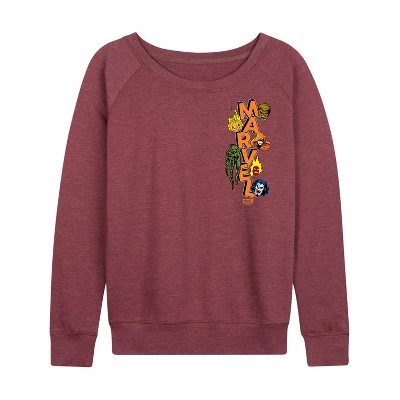 Women's - Marvel - Avengers American Tour Lightweight French Terry Wide Neck Long Sleeve Graphic Shirt