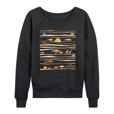 Women's - The Lion King - Line Pattern Lightweight French Terry Wide Neck Long Sleeve Graphic Shirt