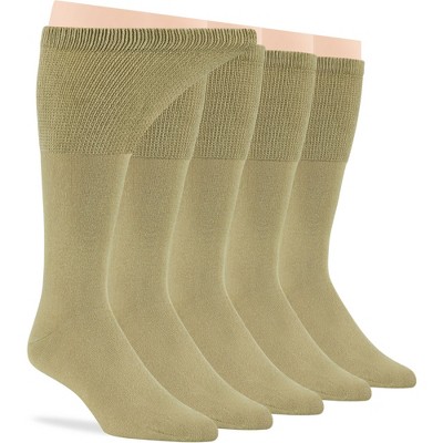 Men Diabetic Non-Binding Cotton Socks - Mid Calf - Patterned Solid 5 Pack Large/XL - Black, Brown, Dark Grey, Khaki | 7BIGSTARS KINGDOM