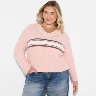 Women's Long Sleeve Cable Trim V-Neck Pullover Sweater - Universal Thread™