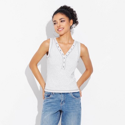Women's Button-Front Ribbed Tank Top - Wild Fable™