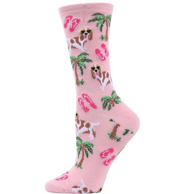 Memoi Tropical Spaniel Bamboo Blend Crew Socks