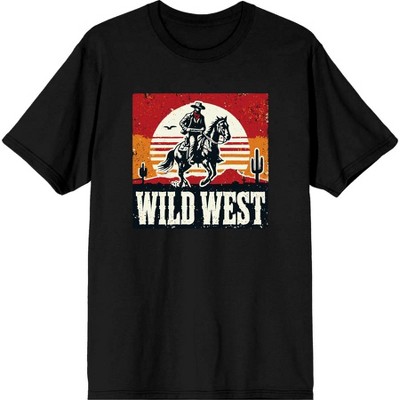 Wild West Cowboy Sunset Ride Adult Crew Neck Short Sleeve Tee