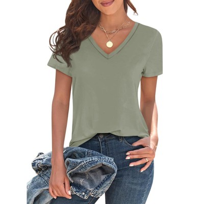 Imily Bela Womens V Neck T Shirts Lightweight Short Sleeve Tops Casual Basic Tees Trendy Summer Tshirt Loose Fit