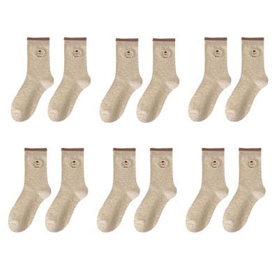 Anna-Kaci Women's 3-Pair Ribbed Crew Socks Set Soft Stretch Knit Fabric Minimal Everyday Comfort Socks - Beige