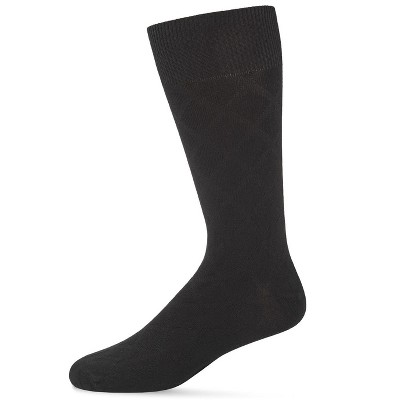 Memoi Men's Bamboo Blend Solid Diamond Crew Socks Black 10-13