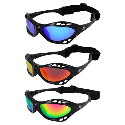 3 Pairs of Birdz Eyewear Seahawk Safety Goggles with Blue, Red Mirror, Pink Mirror Lenses