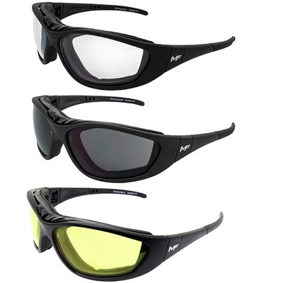 3 Pairs of MotoFrames Patriot Safety Motorcycle Glasses with Clear, Yellow, Smoke Lenses