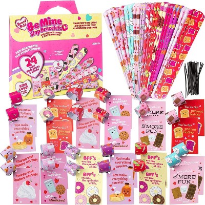 Kids Slap Bracelet Valentine's Day Cards - Sweet Pals (24ct)- Includes Card & Matching Unisex Slap Toy- Make School Fun for Boys & Girls