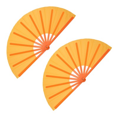 Unique Bargains High Density Polyester Durable Plastic Lightweight Reusable Decorative Folding Fans Orange 2 Pcs