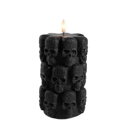LumiPur 3.5"x6" Signature Natural Glow Halloween Flameless LED Wax Skulls Pillar Candle Black