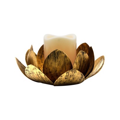 LumaBase Gold Lotus Metal Candleholder with Battery-Operated LED Candle
