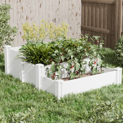 Wooakway White PVC Planter Box Outdoor Garden Raised Flower Bed for Patio Balcony Deck Fence Railing Window Box for Herbs Vegetables