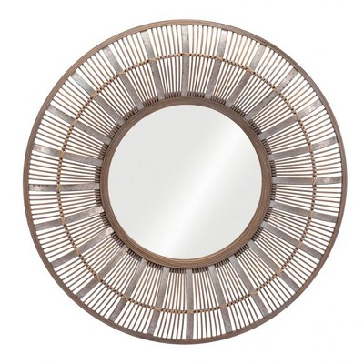 - large round wood mirror