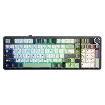 AULA F99Pro Wireless Mechanical Keyboard, TriMode, 8000mAh, Hot Swappable Switches, Backlit, Media Knob - Green Black