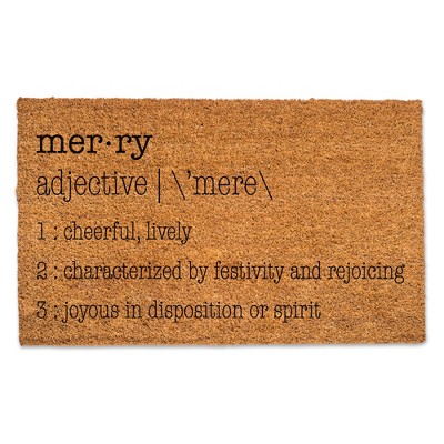 HomeRoots 24" X 36" Brown And Green Christmas Merry and Bright Outdoor Coir Door Mat
