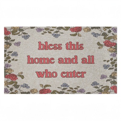 HomeRoots 17" X 29" Natural Pink and Green Coir Floral Welcome Outdoor Door Mat