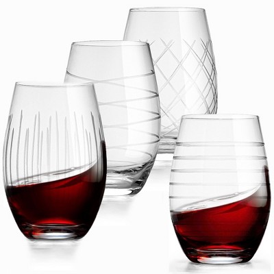 Bella Vino Set of 4 Etched Stemless Wine Glasses - 18oz.