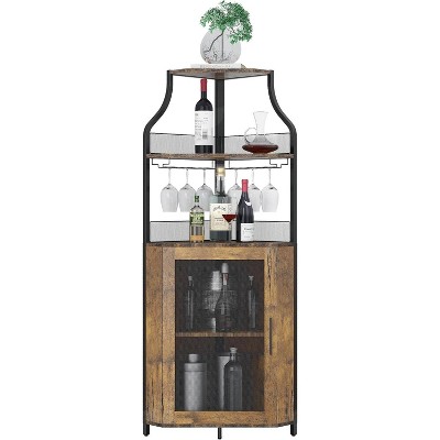 Corner Bar Cabinet with Detachable Wine Rack, 5-Tier Industrial Liquor Cabinet with Glass Holder, Adjustable Shelves for Living Room, Dining Room