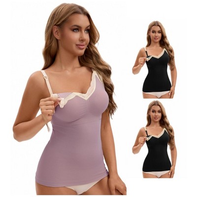 INSPIRE CHIC Women's 3 Pcs Lace V Neck Pregnancy Cami with Built-In Bra Maternity Nursing Tank Top for Breastfeeding