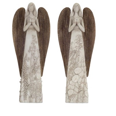 Floral Sculpted Angel Figurines with Wood-Style Wings – Set of 2 by Melrose