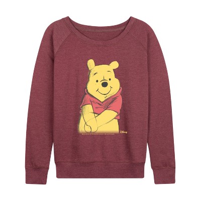 Women's - Winnie The Pooh - Winnie Sketch Lightweight French Terry Wide Neck Long Sleeve Graphic Shirt