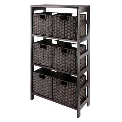 42" 7pc Leo Storage Shelf with Baskets Espresso/Chocolate - Winsome