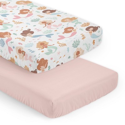 Sweet Jojo Designs Girl Fitted Crib Sheets Set Mermaids Pink Blue and Orange 2pc