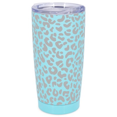 Elanze Designs 20 oz Stainless Steel On the Go Insulated Travel Tumbler With Push Top Lid, Gray Cheetah Leopard Print Sky Blue