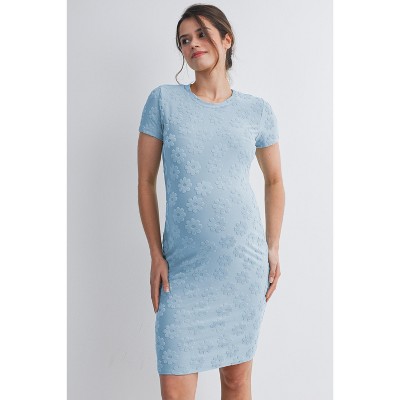 Hello Miz Women's Textured Bodycon Short Sleeve Crewneck Maternity Dress