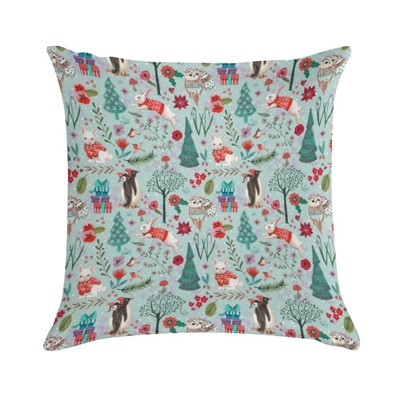 Winter Woodland Blue Red Animals Pillow Covers 18x18 Decorative Throw Pillows Soft Square Cushion Covers for Couch Sofa Bedroom