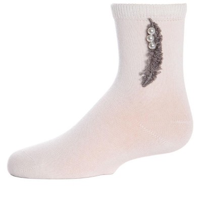Memoi Girls Cozy Ribbed Cotton Blend "Graffiti Heart" Crew Sock