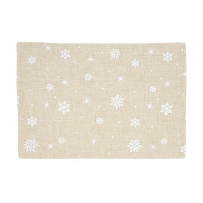 Saro Lifestyle Poly And Linen Blend Christmas Placemats With Snowflake Design (Set of 4), 13"x19", Beige