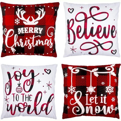 Christmas Pillow Covers 18x18 Set of 4 Winter Throw Pillow Covers Holiday Buffalo Plaid Pillow Covers