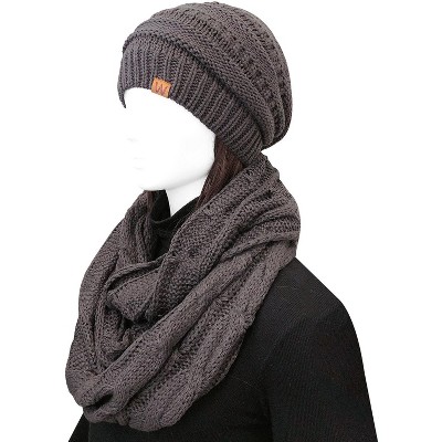 Wrapables Winter Warm Knitted Infinity Scarf and Beanie Hat Set, Charcoal Grey